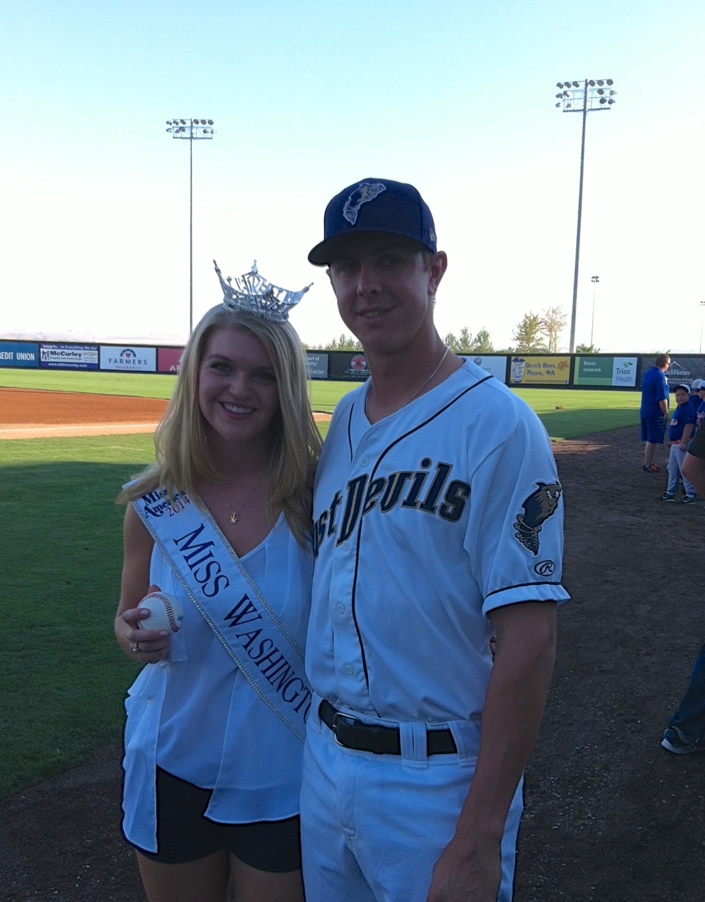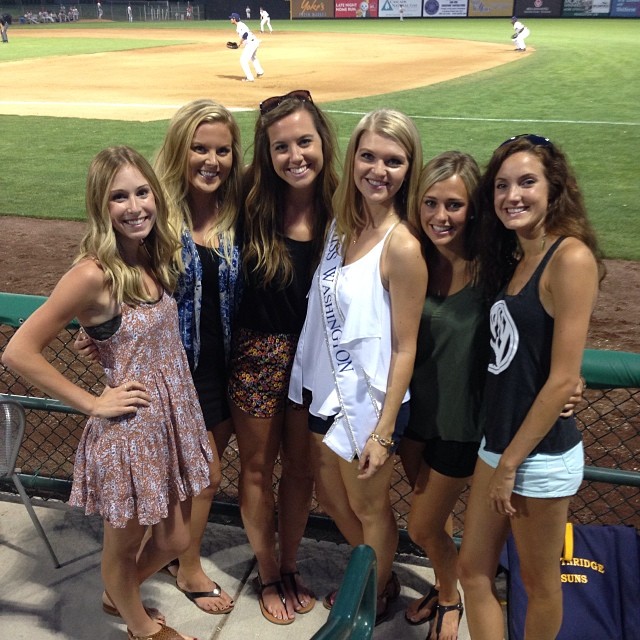 I threw out the first pitch at my old stomping grounds. Yes, the ball made it to the catcher and yes, it went across the plate. It just may have bounced off the plate into the catcher’s glove. After I threw my heater, I got to celebrate with several of my high school friends who weren’t able to make it to Miss Washington.