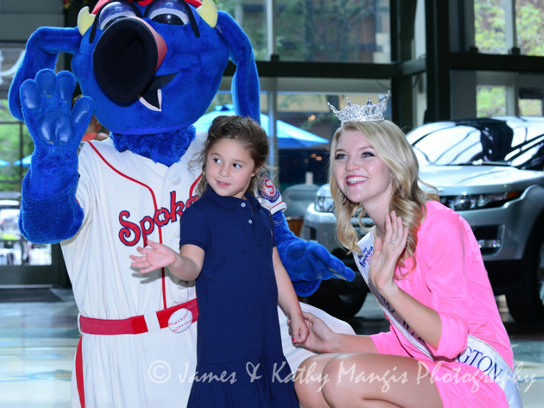 Following, I was off to River Park Square for my Homecoming party courtesy of the Miss Spokane Scholarship Organization. It was so fun to see familiar faces, like my teen Elaina and the Spokane Indians mascot Otto!