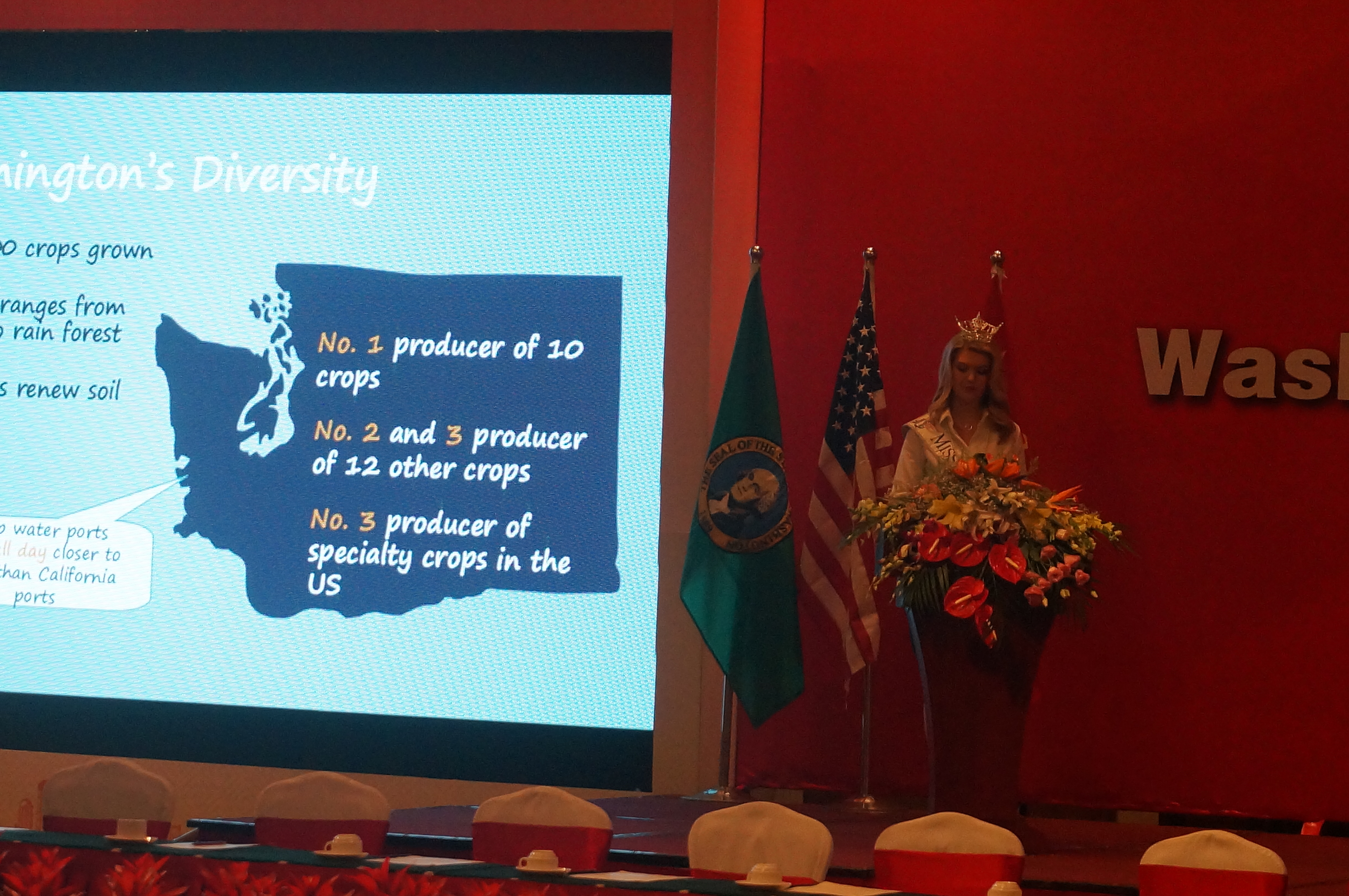 IMG_5777The reason I had been asked to go to China is to have the opportunity to stand on the main stage and present to about a hundred people about Washington state’s agriculture. I learned a lot in the process of preparing for the speech and got to share with the people of China just what makes my beloved state so great and unique.