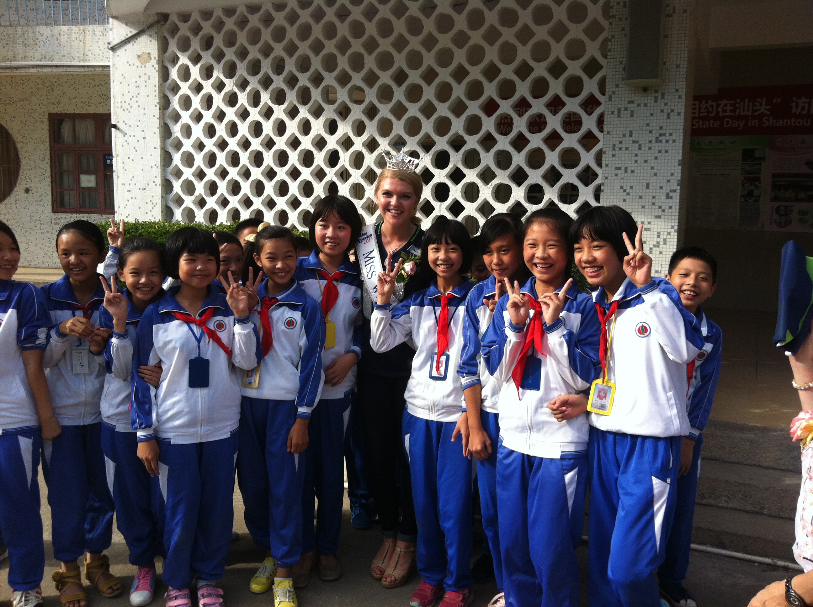 The next day we took a trip to Nan’Ao Island. We stopped at several places, but the one that sticks out to me most is visiting one of the most prestigious primary schools in the Shantou province. Fifth-grade students had prepared questions for the the Lt. Gov. and me in english. Between the two of us, we got asked about food, sports, and hobbies. Then, one student stood up and asked me “Do you like peace?” After realizing that he wasn’t saying peas, I laughed to myself and answered,”Oh yes! World peace!” This is the only instant when I believe that answer was truly acceptable. We then went outside where we found students filling the balconies on all five levels of the schools. There was constant screaming and waving and for a split second I felt like Taylor Swift waving to her adoring fans. It was one of the best feelings.
