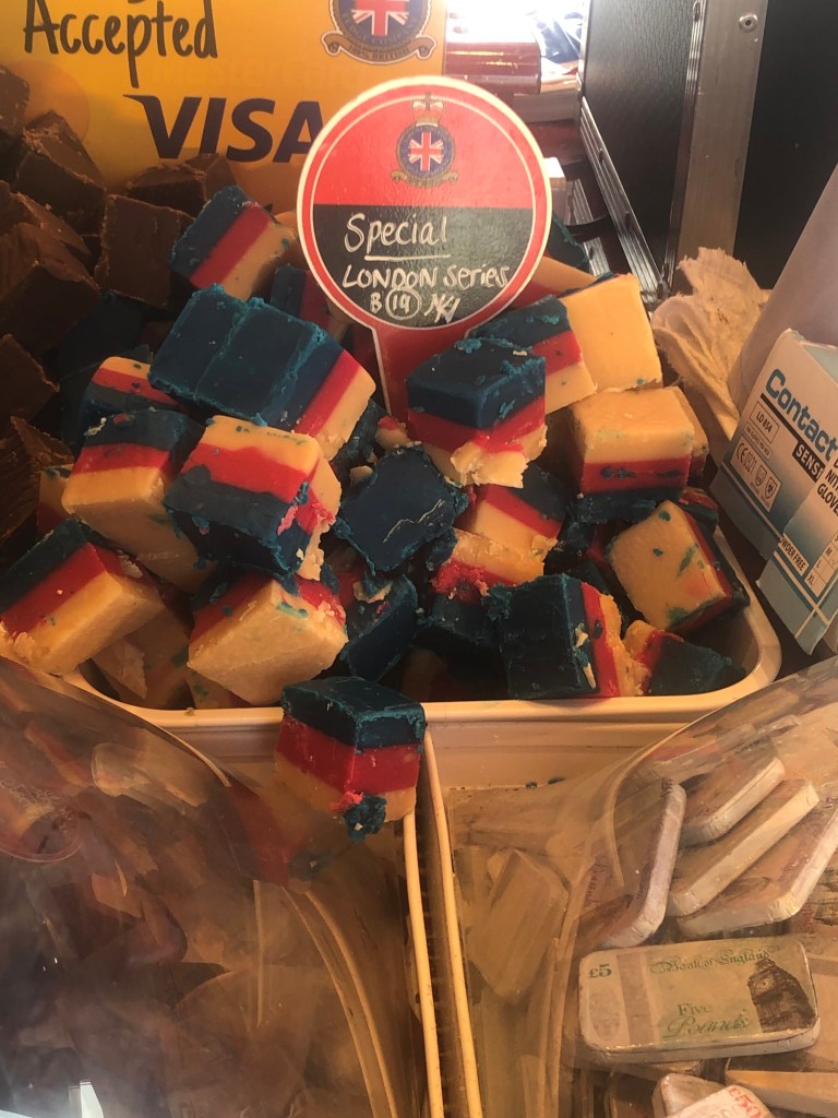 The one truly uncommon food truck I found was actually a red double-decker bus, which sold fudge. The Great British Fudge Company even had a special fudge named London Series.