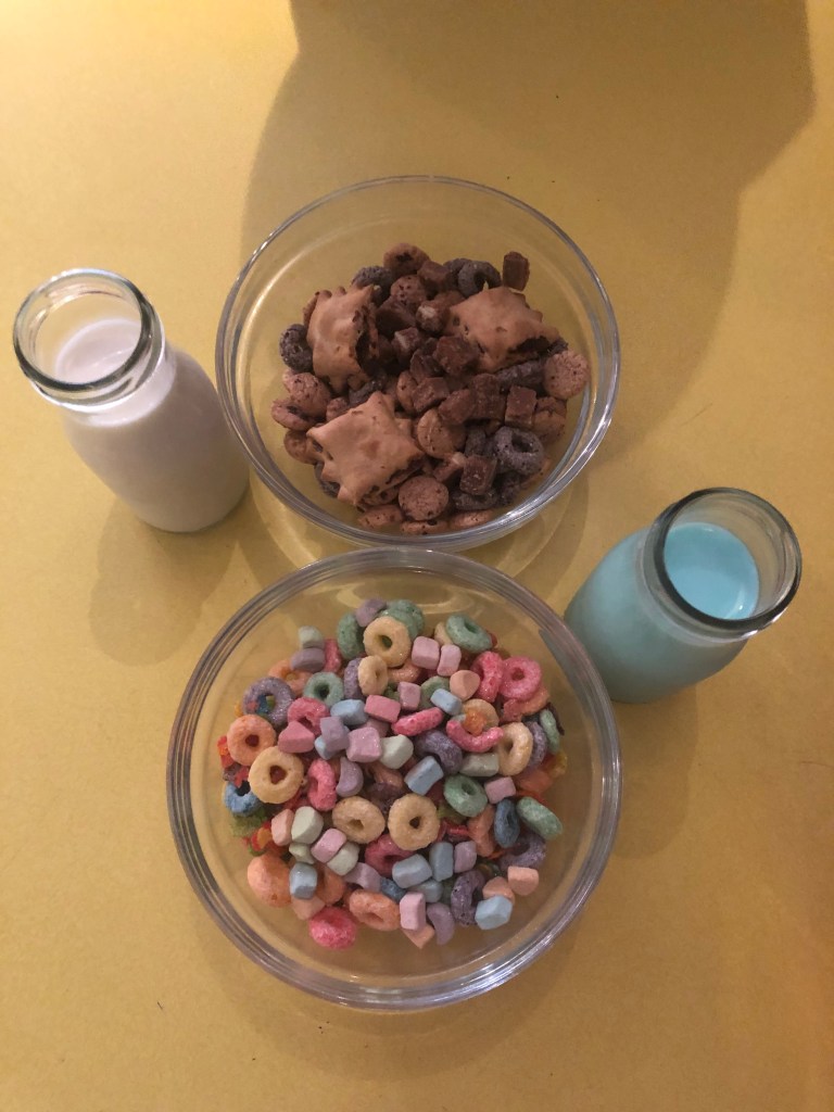 In addition to the crazy cereals, they also have wacky decor. Being a 90’s baby, I was immediately transported back to my childhood with the old cereal boxes, cereal toys, 90’s TV character wallpaper, and VHS tapes displayed throughout the place. Plus you’ll feel right at “home” if you are seated in the back. Your chair will be a twin size bed.
