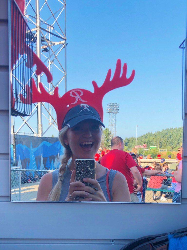 The mascot– Rhubarb the reindeer, the Rainier’s mascot, is a close relative to the Mariner Moose. You’ll see him roaming the stands and dancing on the dugout.