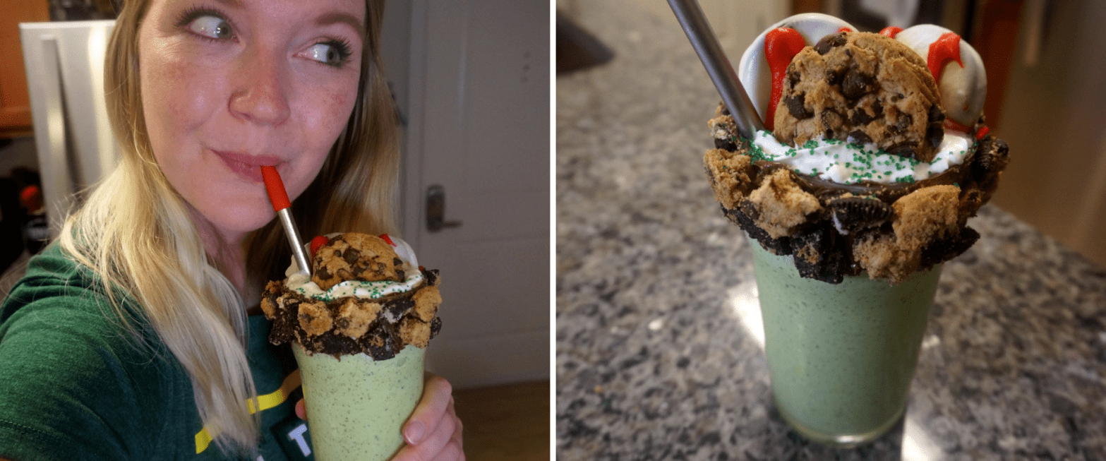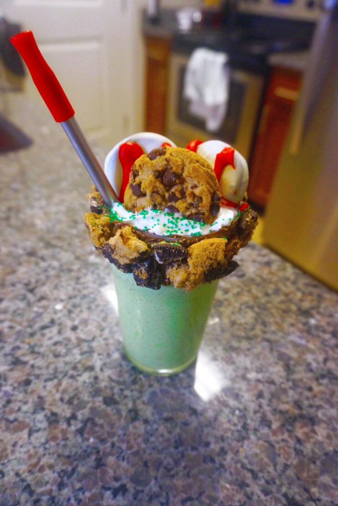 Inspired by the huge milkshakes found at Yankee Stadium, I created my own monster of a milkshake…a green monster milkshake!