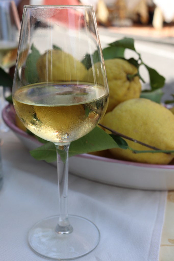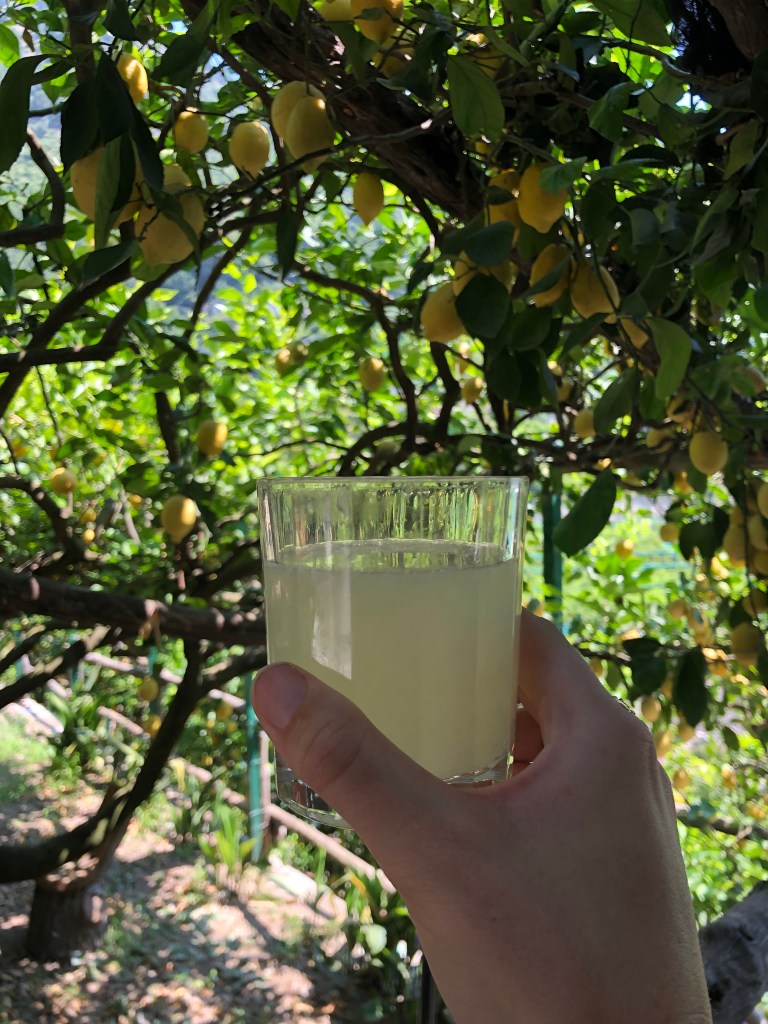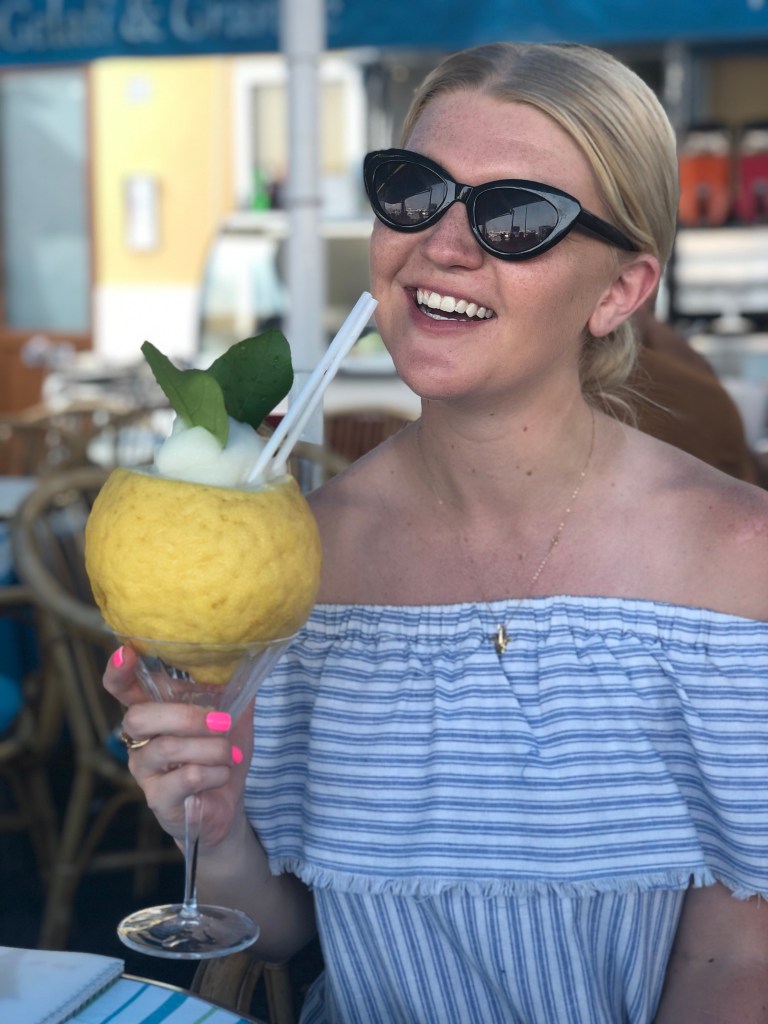 Following the boat tour, we grabbed lunch on the marina. Again, we enjoyed limoncello. However, this time it was served in a lemon…the size of my head. Did I mention this the land of lemons?
