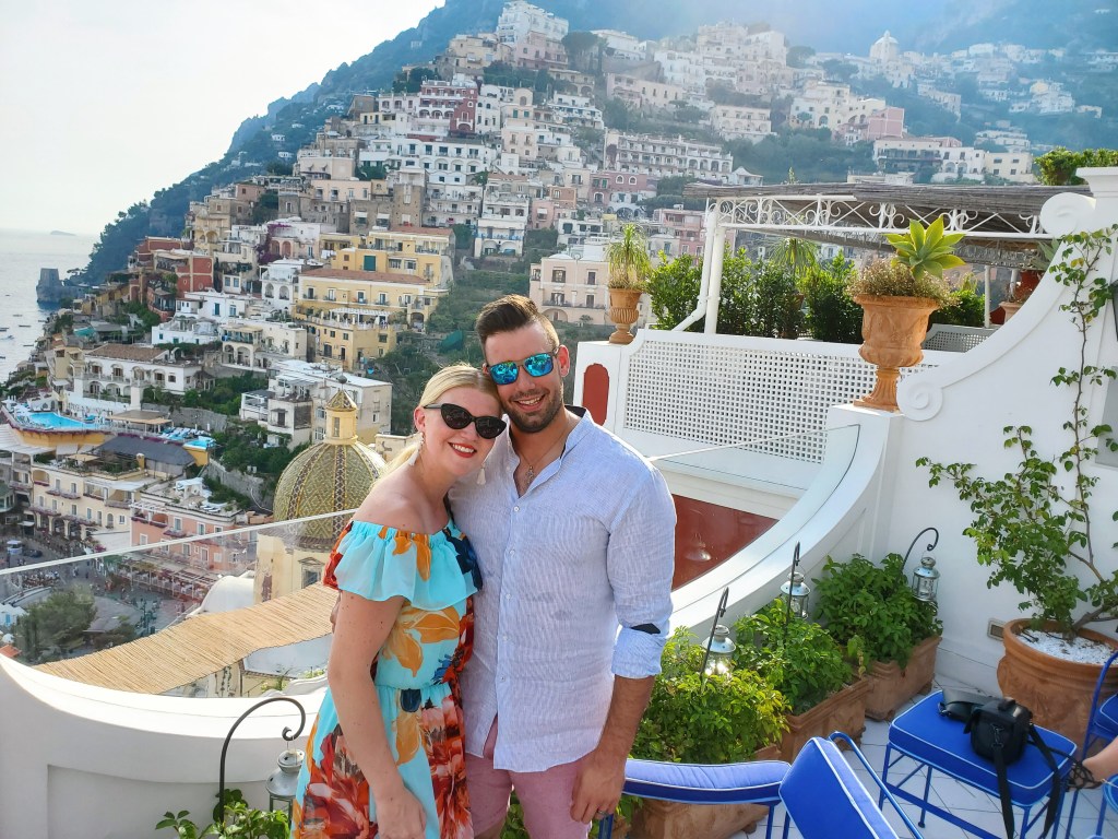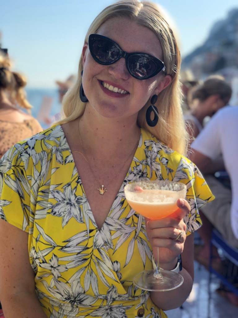 When we arrived back into town, we stopped in for a drink at Franco’s Bar. If you did any other kind of research before your trip, this bar probably came up. Essentially, it’s a small but gorgeous patio that overlooks the water and the rest of Positano. To get a “front row” seat, you have to get there when they open. Well, actually before they open, as we would later learn.