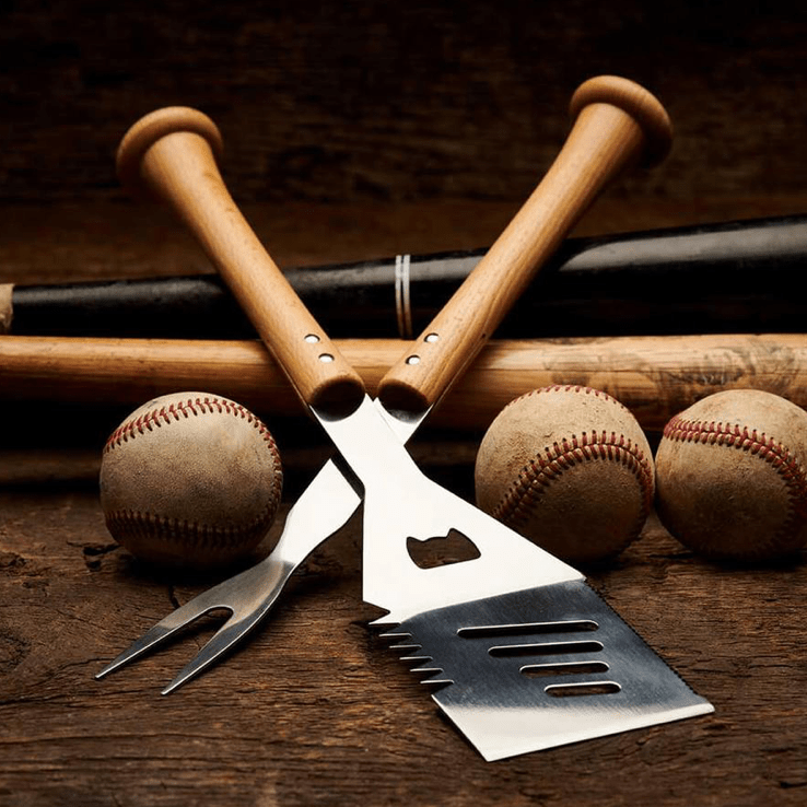 9. Grill set- Help someone tune up their cooking/grilling skills with a personalized grill set. (Baseball BBQ)